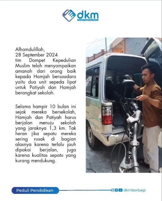 “Terimakasih banyak ya kak, udah kasih kami sepeda. Semoga kakak semua yang sudah baik sama kami selalu sehat dan bahagia ya” Ucap Hamjah